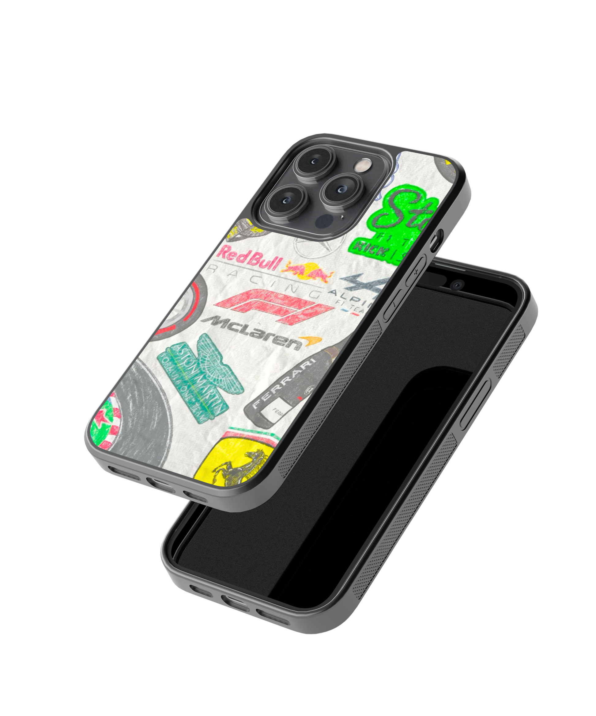 This Racer Stickers Mix iPhone case is a graffiti collage of Formula 1 teams and sponsors. Red Bull, Ferrari, McLaren — all in one bold aesthetic design for racing fans.